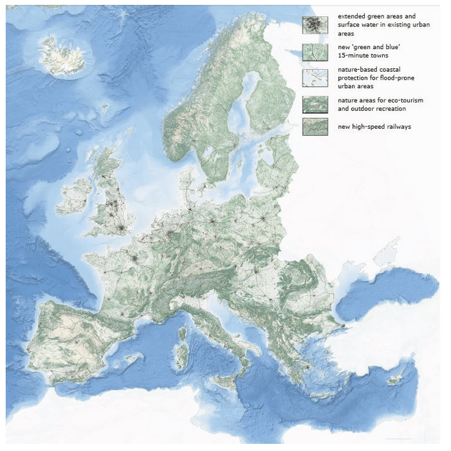 Doğa-pozitif bir Avrupa’ya doğru dönüşüm yerel olacaktır, olmalıdır da. Ama bu yerellik kapsayıcı ve adildir de. Çünkü milyonlarca istihdam yaratılacak, uygun fiyatlı su, gıda ve enerji sağlanarak ve genel sağlık ve refahı iyileştirilerek tüm Avrupalılara fayda sağlayacaktır. Tüm Avrupanın bu iklim krizinde çözümün bir parçası olmasını sağlamaya çalışmak bu tasavvurun gerçekleşebilmesinin en önemli kısmıdır. Kimse adım adım ne yapacağını bilmiyor, elimizde böyle bir plan yok. Doğa temelli Avrupa tasavvurunun, iklim krizinin çözümün yapı taşlarının bir araya getirilmesi ve daha fazla keşif ve katılım için bir ilk adım olduğunu belirtmek önemlidir.