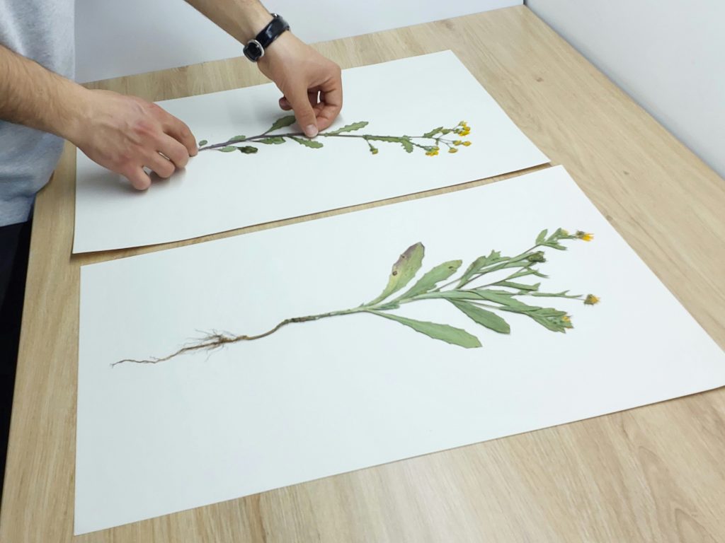 Herbaryumu yapılacak bitkileri seçerken, tüm vejetatif aksamlarının tam olmasına ve teşhis kriterlerini kaybetmemiş olmasına dikkat edilir. Seçilen bitkiler, topraktan veya diğer yabancı cisimlerden arındırılır. Daha sonra iki tahta plaka arasına kurutma kağıtları konulur, kurutma kağıdına bitkilerin yaprakları birbiri üzerine gelmeyecek biçimde açılarak ve düzeltilerek bitki yerleştirilir. Üzerine ikinci bir kurutma kağıdı ve diğer tahta plaka kapatılır. Bitki hakkında toplanan bütün bilgiler kayıt edilir. Plaka üzerine ağırlık koyularak bitkilere baskı uygulanır (Şekil 2.0). Bir süre bekletildikten sonra (bu süre, bitkinin nem düzeyine bağlı olarak değişmektedir) açılarak, herhangi bir küf gelişimini engellemek için havalandırılır (Şekil 3.0). Son olarak, bitki için uygun bir kağıt seçilerek şekildeki gibi merkeze yerleştirilir ve ardından bitkinin bilimsel adı ile barkod numarası yazılır (Şekil 4.0).