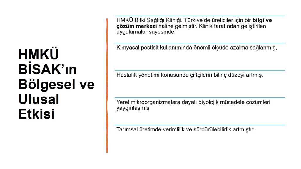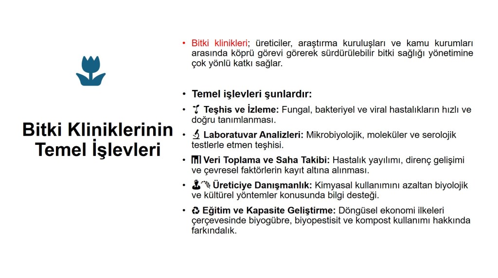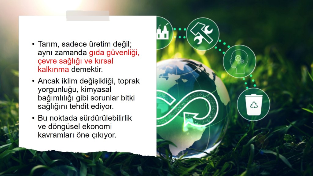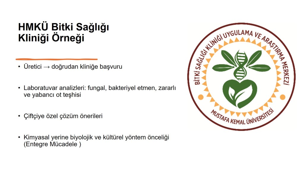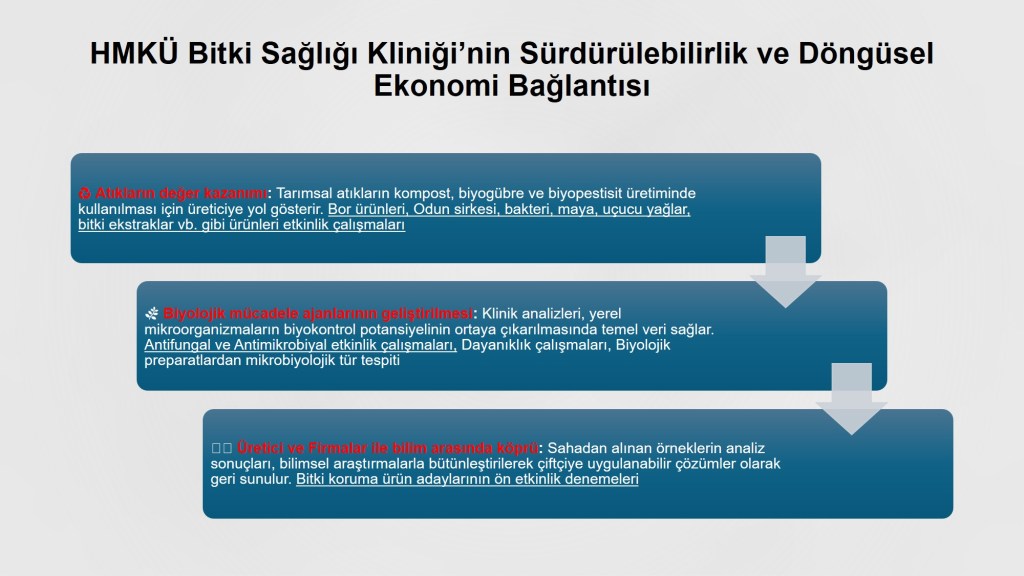HMKÜ Bitki Sağlığı Kliniği Uygulama ve Araştırma Merkezi, Müdürü Prof. Dr. Şener Kurt tarafından “Döngüsel Ekonomi, Atık Yönetimi ve Sürdürülebilirlik Sempozyumu (DASS-2025)” kapsamında “Bitki Sağlığında Sürdürülebilirlik ve Döngüsel Ekonomi: HMKÜ Bitki Sağlığı Kliniği Örneği” başlıklı sunum ile tanıtıldı.