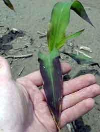 Mısırda Azot eksikliğinde yaşlı yapraklarda V harfi şeklide kloroz ve nekroz gözlenir.