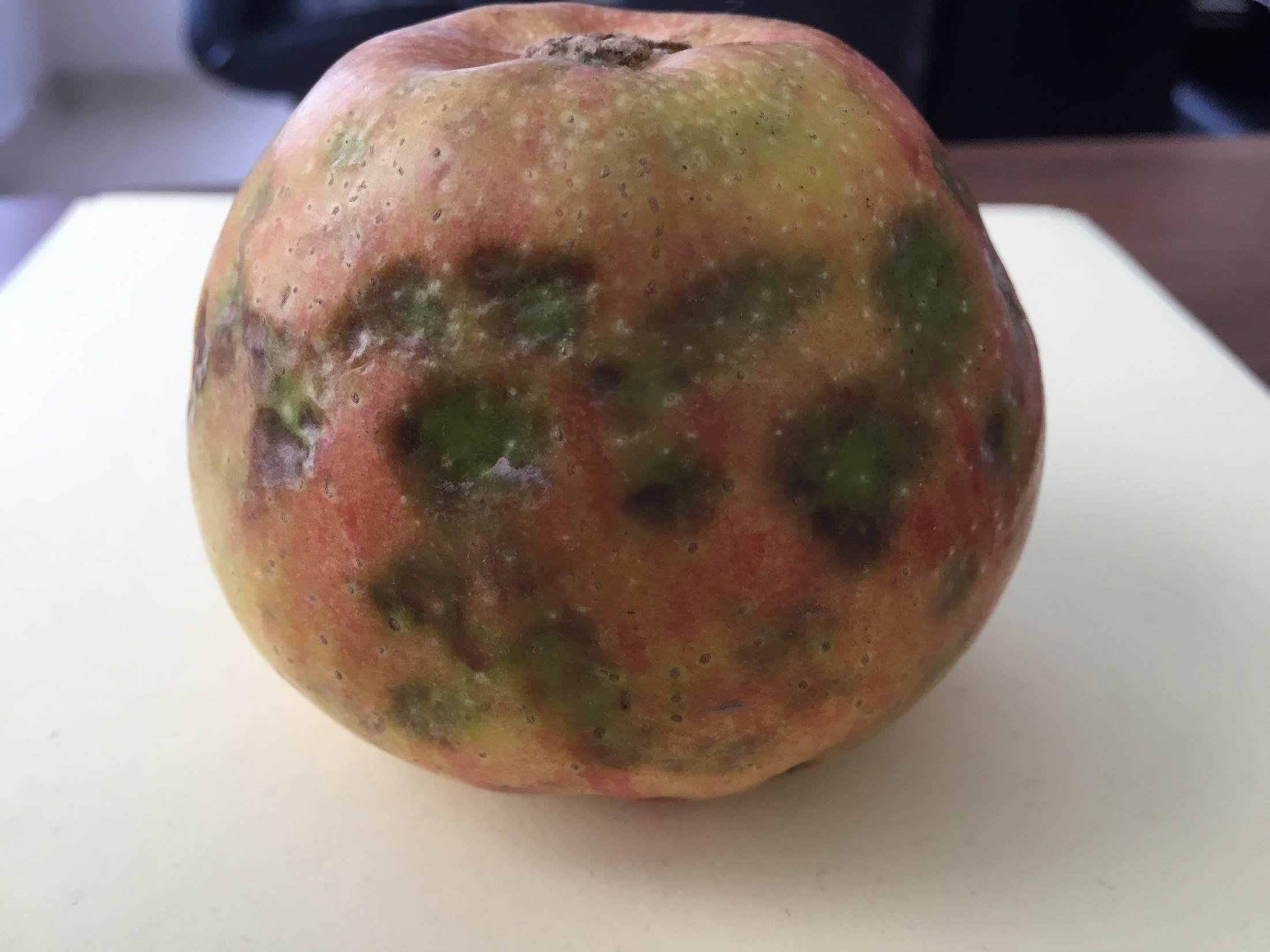 Ca eksikliği nedeniyle oluşan mantarımsı lekeler haziran ayında meyve yüzeyinde yeşil lekeler şeklinde görülmeye başlar. Olgunlaşma devam ettikçe bu lekelerin altındaki doku mantarımsı bir hal alır. Çoğu kez meyve dışardan normal görülse de etli kısımda mantarsı lezyonlar görülür.