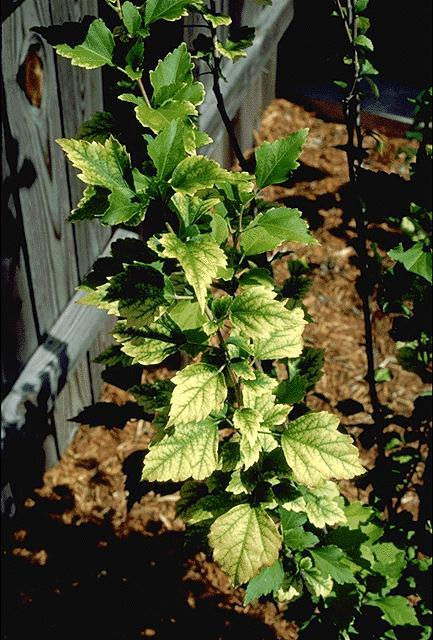 Mangan noksanlığında yapraklardaki damarlar arasında sararma görülür.