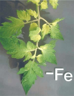 - Ana ve yan damarlar yeşil kalırken, damar arası yaprak dokusu beyaza yakın klorotik bir hal alır. Bu noksanlık bu yönü ile Magnezyum noksanlığı ile benzerlik gösterir.